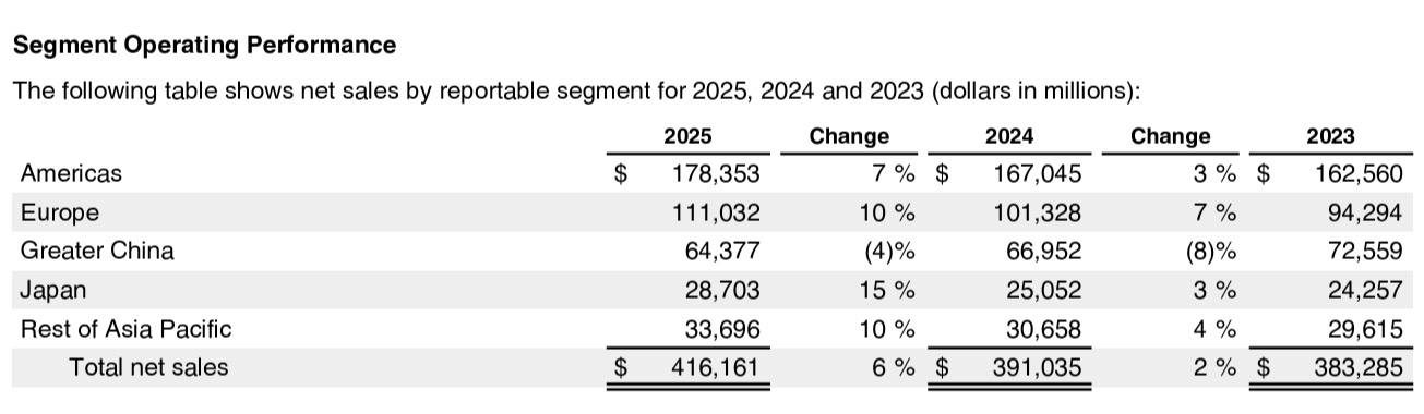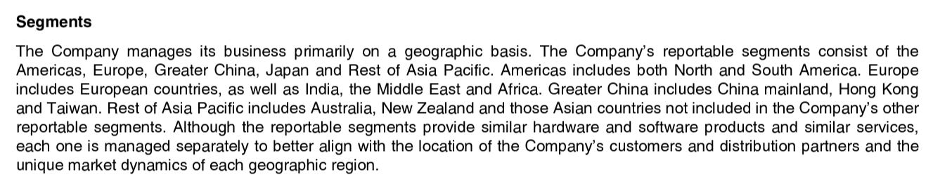 在Item 1我們已經了解蘋果以地域進行分部,來到Item 7企業就會把分部表現呈現