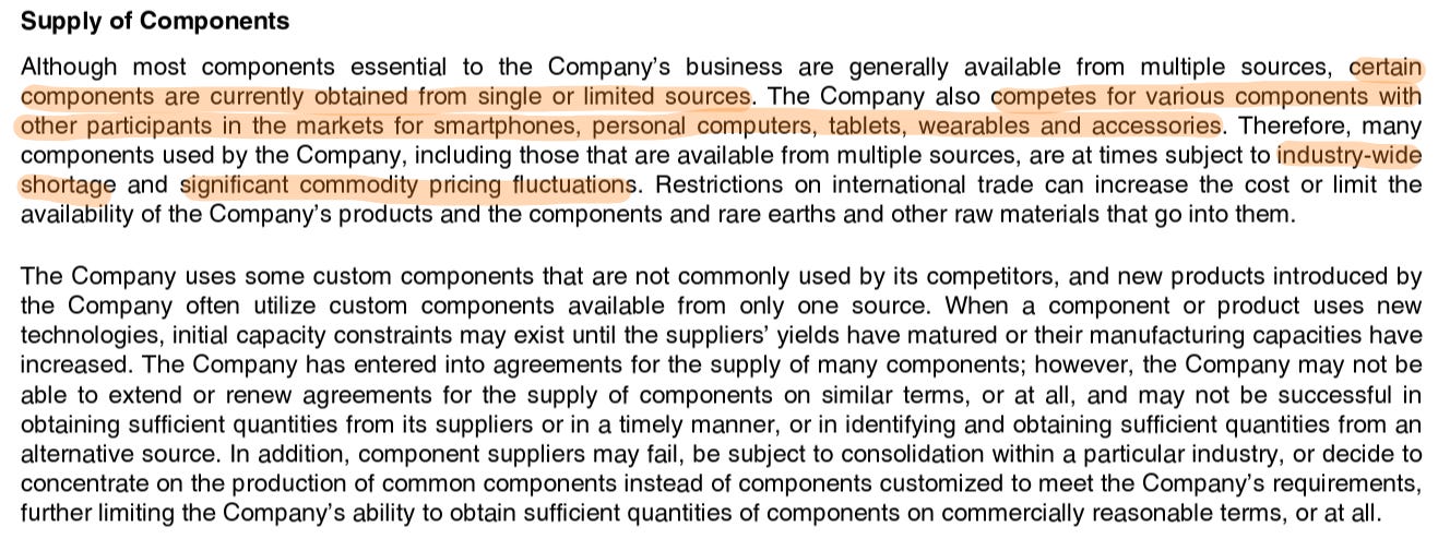 蘋果則受到上游情況影響供應,公司則表明,某些組件只能從單一或有限的渠道獲得,他們也需要和其他競爭者競爭這些組件。如無意外,這包括了台積電的晶片供應